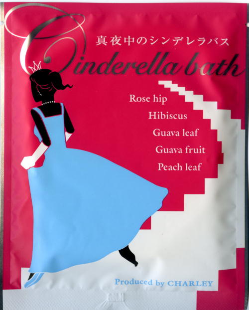 ティーバッグを揉むと血の様なクリアレッドの液体が染み出す。タール系色素の鮮烈な赤はシンデレラと言ったイメージではない、少々ケバい印象。香りは桃のようなフルーティでフレッシュ感のあるローズの香り。拡散性は弱いがティーバッグを鼻に近付けるといつでも香りを楽しめる。湯上りの温浴感はあまりなく(当人比110%程度)、肌も保湿感は感じられない。イマイチどのあたりがシンデレラ感を醸し出しているのか不明であり、イメージ付けに工夫が欲しい。効能も不満足。(by あるびの所長)